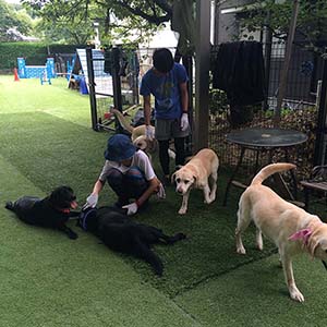 大阪動物専門学校、トレーナーコースのインターンシップ生を受け入れました。基礎的な訓練はもちろん、犬舎の掃除やワンコたちのケアなども研修しました。また研修中に訓練所のアリスが出産しました。
