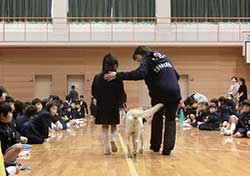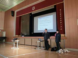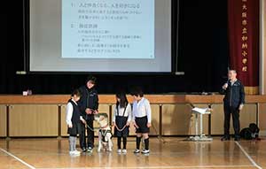 東大阪市立加納小学校にて、三年生児童を対象に介助犬に関する授業を実施しました。