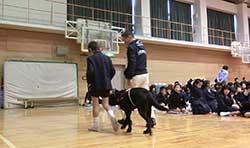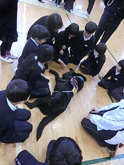 奈良県桜井市立桜井西中学校、1年生を対象に、介助犬の講演と訓練体験を実施しました。