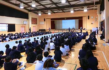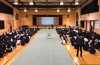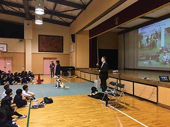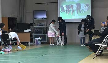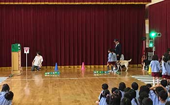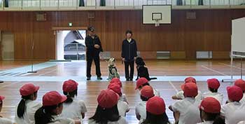 大阪府 泉佐野市立 長坂小学校にて、全校児童に対し介助犬の講演とデモンストレーションを実施しました。