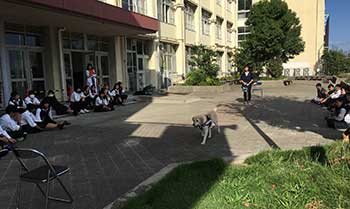 大阪府立西淀川支援学校にて介助犬の講演とふれあいコーナーを実施しました。
