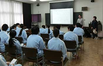 大阪府立阿武野高校の福祉科にて介助犬の授業を実施しました。