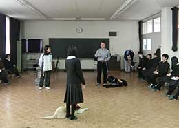 奈良県桜井市立桜井西中学校、1年生を対象に、介助犬の講演と訓練体験を実施しました。